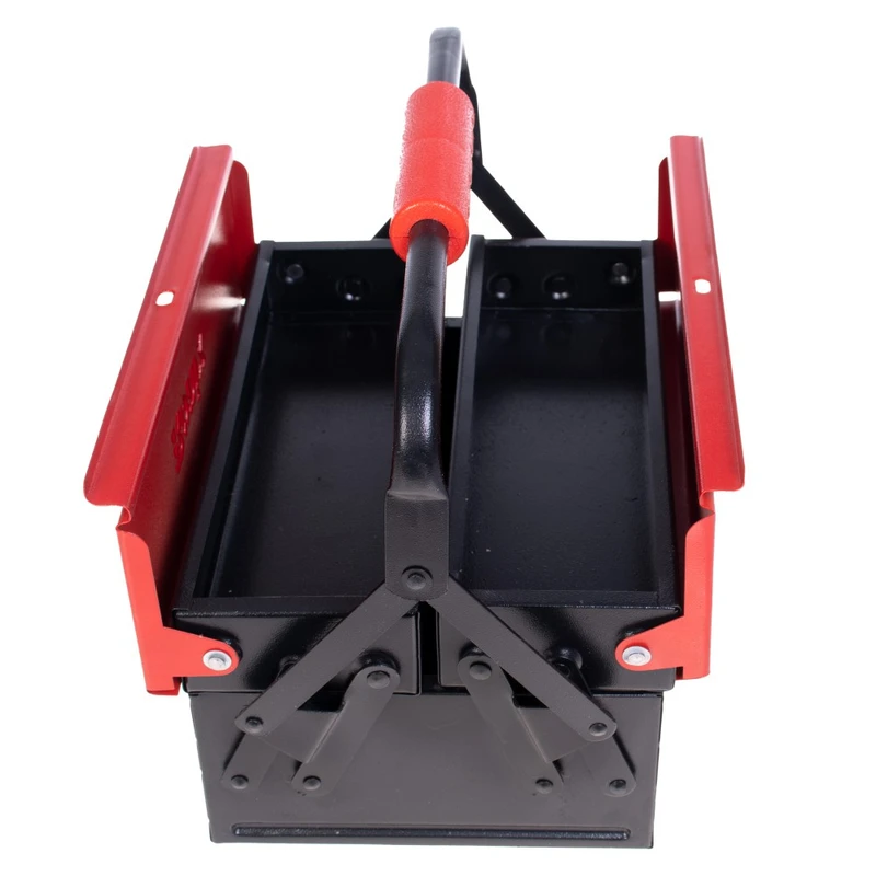 برای قرارگیری ابزارآلات به صورت منظم و مرتب، در خانه، کارگاه، کارخانه، مغازه، صندوق عقب خودرو و سایر اماکن و نیز برای جابجایی هر چه آسانتر ابزارآلات به محل کار، جعبه ابزارهای فلزی یک گزینهی خوب و بادوام و مطمئن به شمار میروند. برای اطمینان از دوام و استحکام این جعبه ابزار، تمام بدنهی آن از ورقههای فولادی مرغوب زنگنزن ساخته شده و به وسیلهی پینهای مقاوم و محکم به صورت ایستا و مقاوم، به یکدیگر متصل شده است. یک لایه رنگ کوره ای الکترواستاتیک بر روی تمامی بدنه زده شده است تا هم بر دوام و زیبایی آن اضافه کند و هم به سطح آن خاصیت ضد خش و خراش و زنگ زدگی بدهد. از این جعبه ابزار سایز 30 سانت، که دارای سه محفظه در دو اندازهی مختلف است، میتوانید برای نگهداری و جابجایی انواع ابزارهای کوچک و متوسط، از جمله انواع پیچ و مهره و واشر و آچار و انبر و انواع ابزار دستی مختلف استفاده نمایید. ابعاد 3 محفطهی این جعبه ابزار عبارتند از : دو محفظهی کوچکتر با ابعاد 5×10×30 سانتیمتر و یک محفظهی بزرگتر با ابعاد 10×20×30 سانتیمتر؛ در قسمت میانی دستهی فلزی این جعبه ابزار رونیکس، یک دستگیرهی پلاستیکی ABS ارگونومیک قرمز رنگ به طول 11.5 سانتیمتر قرار داده شده است که به خاطر جنس نرم و راحت خود و به دلیل داشتن جای انگشت گذاری، حمل و نقل جعبه را آسان و بدون خستگی کرده است. درب اصلی این جعبه ابزار اتوماتیک، به صورت خودکار است و به شکل کاملا منظم باز و بسته میشود.